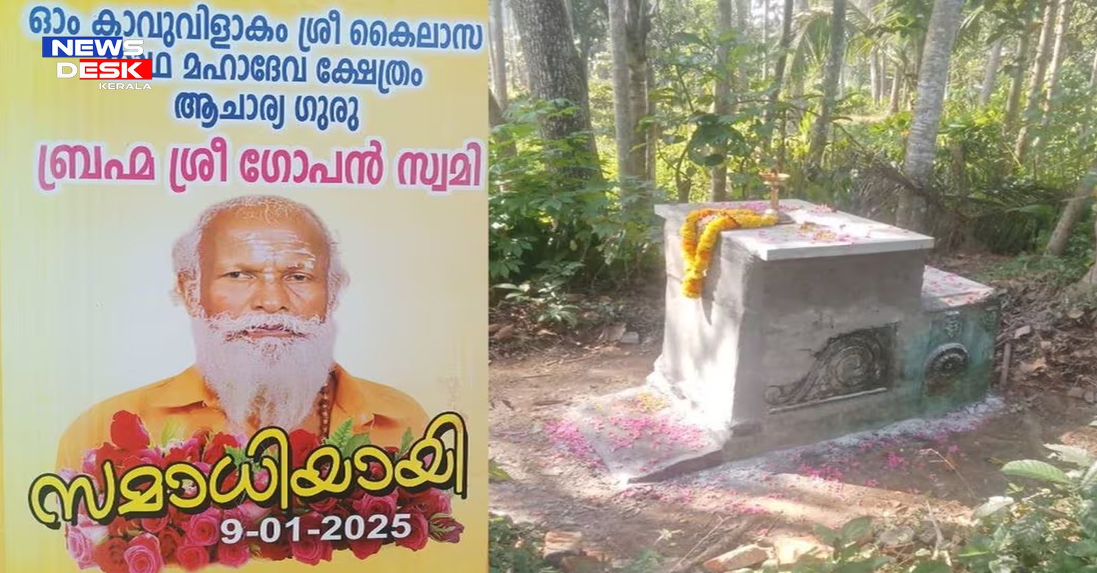 മണിയന്‍ എന്ന ഗോപന്‍സ്വാമി(69) സമാധിയായതിനെത്തുടര്‍ന്ന് പദ്മപീഠത്തിലിരുത്തി കോണ്‍ക്രീറ്റ് അറയില്‍ സംസ്‌കരിച്ചെന്നാണ് മക്കള്‍ പോലീസിനു നല്‍കിയ മൊഴി.
