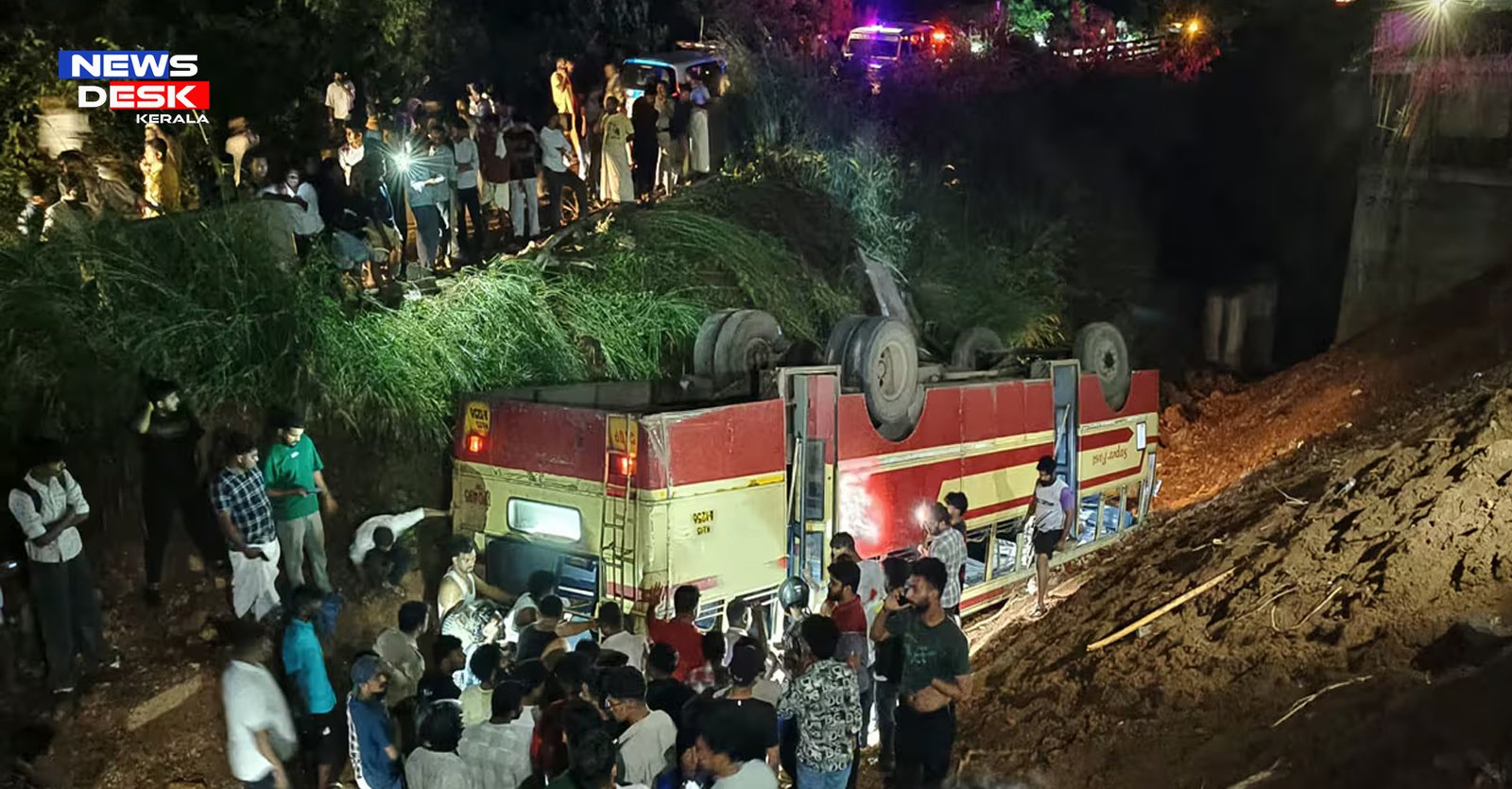ഞായറാഴ്ച രാത്രി പതിനൊന്നോടെയായിരുന്നു അപകടം. കോഴിക്കോട് തൊട്ടില്‍പ്പാലത്തുനിന്ന് തിരുവനന്തപുരത്തേക്കു പോകുന്ന സൂപ്പര്‍ഫാസ്റ്റ് ബസാണ് നിയന്ത്രണം വിട്ട് തലകീഴായി മറിഞ്ഞത്.